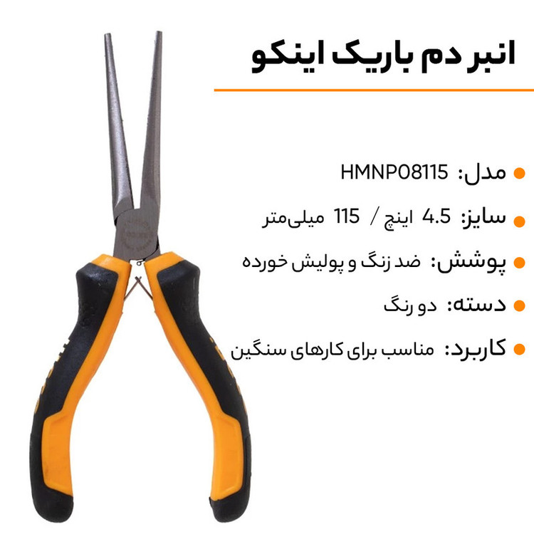 انبر دم باریک اینکو مدل HM-NN-P-08115 سایز 4.5 اینچ