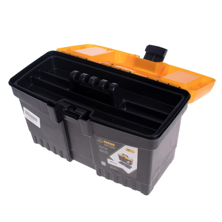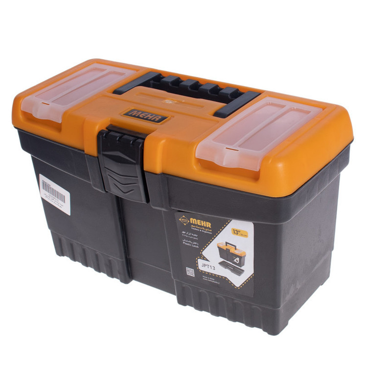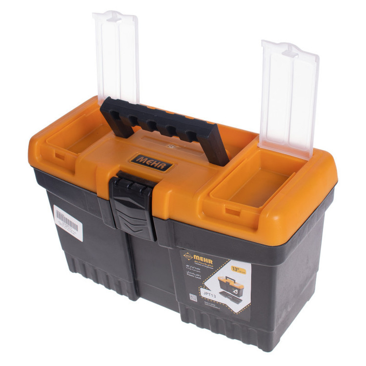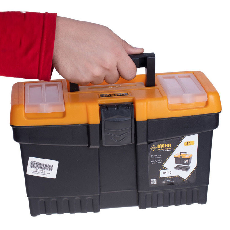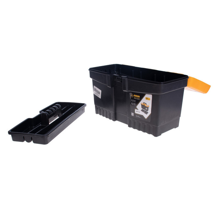 دارای یک سینی قابل حمل 4 قفسهای به عمق 3 سانتیمتر/ در اصلی مجهز به 2 محفظه در دار کوچک با عمق 2.5 سانت/ دارای دستگیره تاشو/ امکان نگهداری انواع ابزار کوچک و متوسط