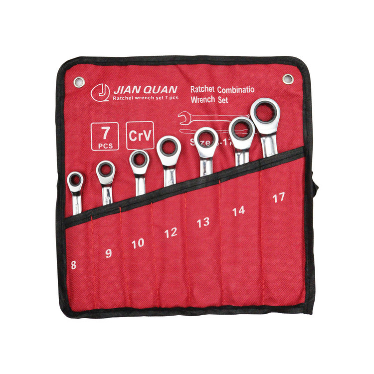 - آچار یکسر تخت یکسر رینگ جغجغه ای مجموعه 7 عددی - در سایز های 8 - 9 - 10 - 12 - 13 - 14 - 17 میلی متر - کیفیت بالا - جنس : کروم وانادیوم - دارای کیف برزنتی با کیفیت دوخت بالا