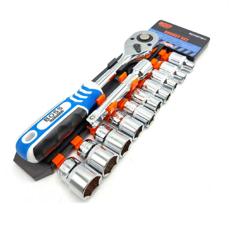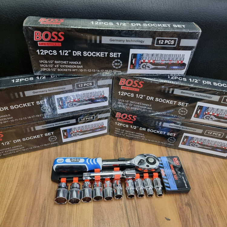 دارای 10 سری بکس با درایو 1/2 اینچ در سایزهای 10، 11، 12، 13، 14، 16، 17، 19، 21 و 22- دارای یک دستهی بکس جغجغهای با قابلیت چرخش در هر دو جهت بهطول 25 سانتیمتر - 1 عدد افزایندهی طول به طول 12.5 سانتیمتر