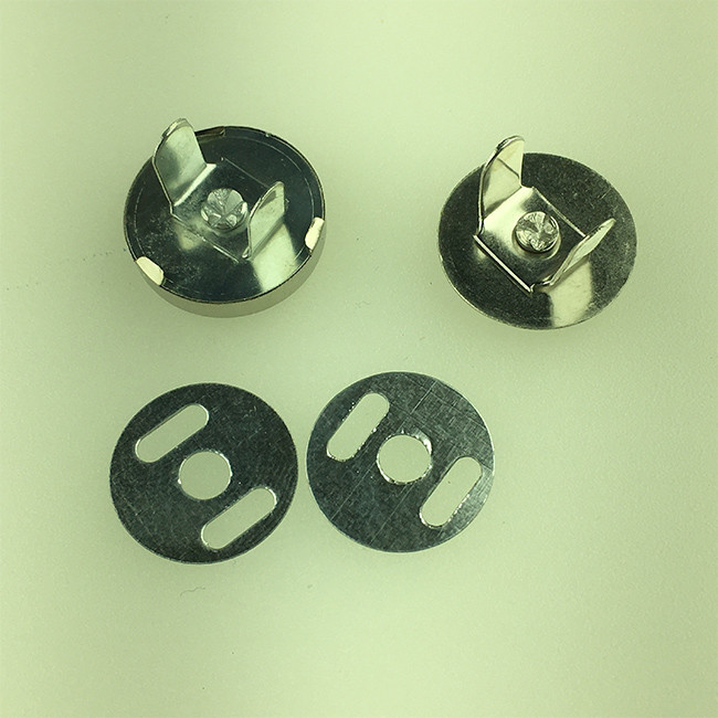 دکمه آهنربایی چرم دوزی ، سایز بزرگ 2 سانت ، رنگ نقره ای ، بسته 5 عددی همراه گیره فلزی