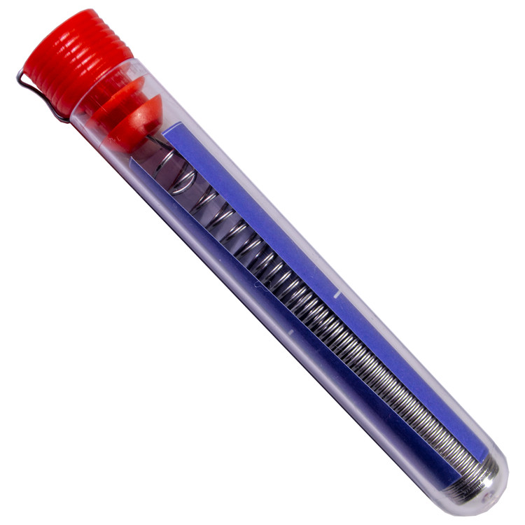 17 گرم سیم لحیم قطر 1 میلیمتر 60% قلع و 40% فلز سرب هنگام لحیمکاری از برخورد مستقیم انگشتان دست به سیم لحیم که درصدی سرب داخل آن است جلوگیری میکند.