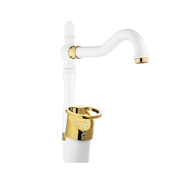 دارای نشان استاندارد ملی ایران پوشش رنگ سفید الکترواستاتیک کوره ای پوشش طلایی تیتانیوم پرلاتور برنجی و ضد زنگ _شیر ظرفشویی با ابعاد 30×7×24 وزن 1 کیلوگرم و دارای دو عدد شلنگ پیسوار برای اتصال شیر ظرفشویی به آب گرم و آب سرد