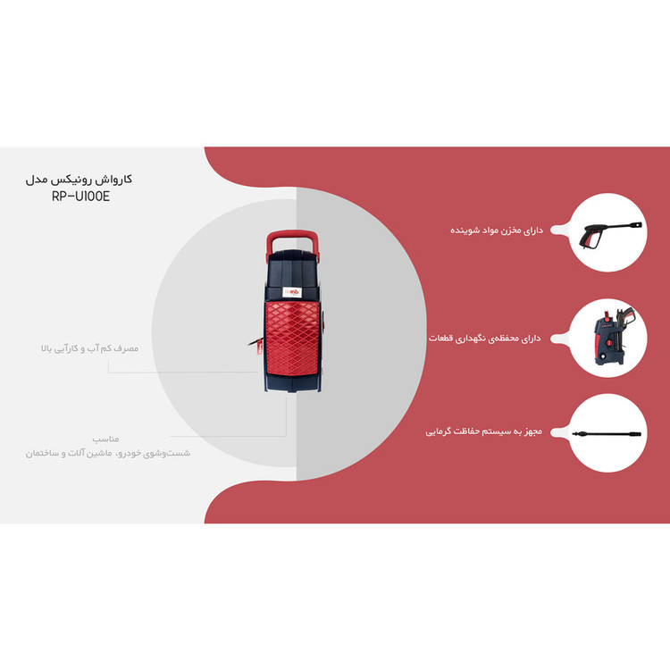 - دفترچه راهنما - مخزن مواد شوینده - سرشیلنگی - تفنگی آب - شلنگ 5 متری - دو عدد لنس - نازل - سوزن تمیزکننده نازل