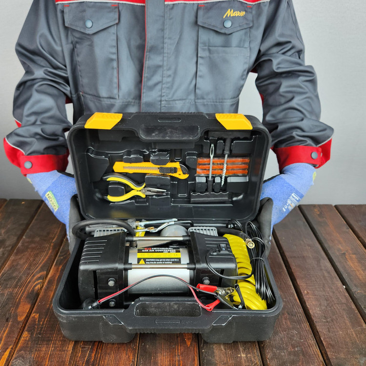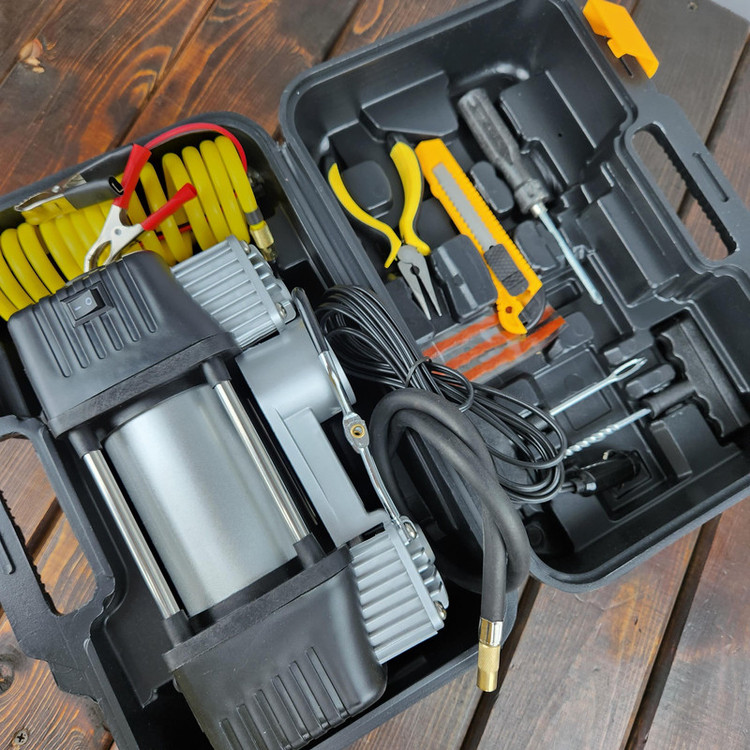 کیف حمل شلنگ فنری بلند سه عدد نازل باد برای مصارف مختلف چسب پیچگوشتی دم باریک.