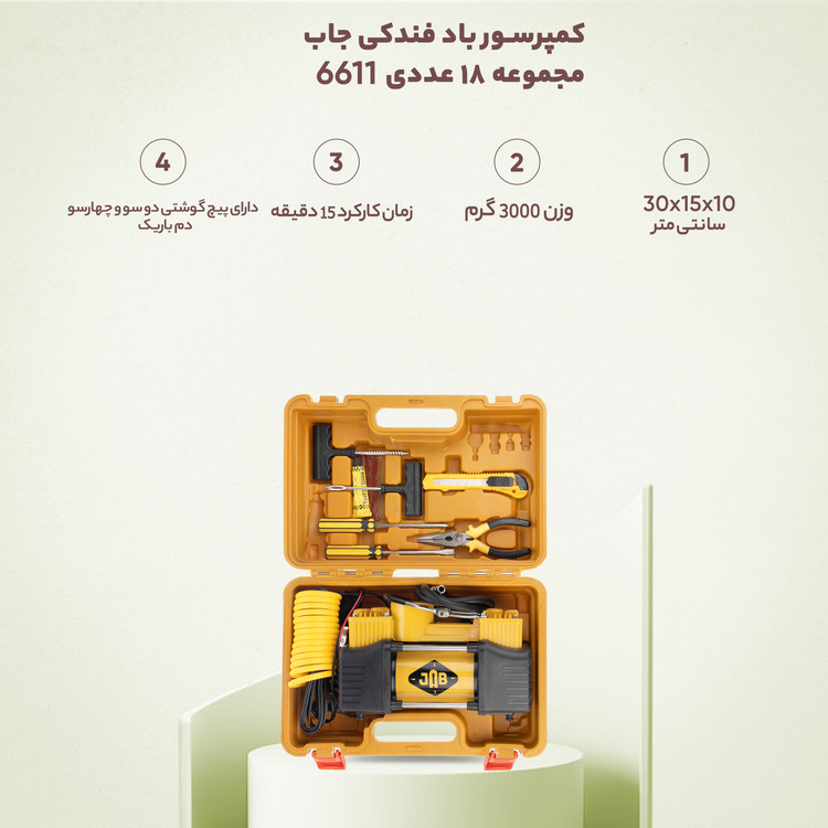 مجموعه 18 عددی کمپرسور باد فندکی جاب مدل 6611