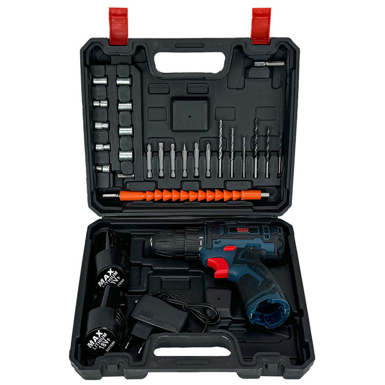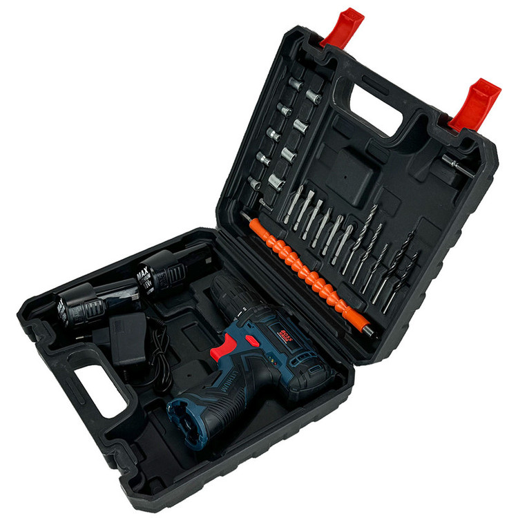 دو عدد باطری 18 ولت/مته اهن سایز 4 و 5 و 6 /مته چوب سایز 4 و 5 و 6/ سری پیچ گوشتی 6 عدد (2عدد دوسو/2عدد چهارسو/2عدد الن ستاره ای) /سری بکس از سایز 5 تا 13 /یک عدد رابط فنری و 2 عدد رابط بکس