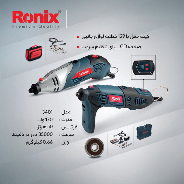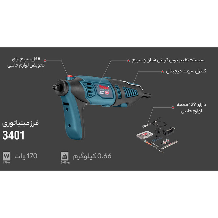 - مجهز به 129 قلم انواع لوازم جانبی دستگاه
