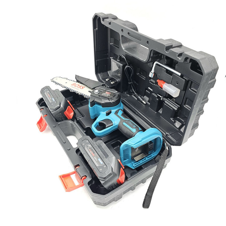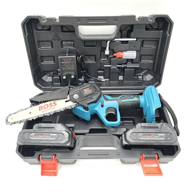 کیف حمل ضد ضربه - روغن دان -آچار - پیچ گوشتی - یک عدد ساطوری - یک عدد زنجیر - یک عدد محافظ براده - یک عدد شارژر باطری - دو عدد باطری لیتیومی 25 ولتی باس -