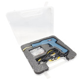 دستگاه منگنه حرارتی پرتابل، برای اتصال دو قسمت پلاستیکی به یکدیگر مورد استفاده قرار میگیرد، قسمت های مختلف خودرو از پلاستیک تشکیل شده اند از جمله سپر ، داشبورت ، رودری و ... مورد استفاده قرار میگیرد. با استفاده از دستگاه منگنه حرارتی پرتابل میتوانید برای اتصال کوتاه مقاومتی گیره ای استفاده کنید که برای افزایش عمر بدنه خودرو مفید است .همچنین میتوانید مانع از پیشروی ترک قسمت پلاستیکی خودور شوید و از آن برای تعمیر قطعات مختلف مانند سپر خودرو، قطعات پلاستیکی و سطح پلاستیکی استفاده کنید. در کیف این دستگاه به تعداد مورد نیاز و مدل های مختلفی از منگنه برای جوش پلاستیک قرار داده شده است. تفنگ جوش پلاستیک باس این دستگاه با تولید بالاترین رنج حرارت و همچنین بیثشترین حجم دمندگی هوای گرم درفرآیند جوشکاری پلاستیک بهترین نتیجه راایجاد میکند. از دیگر ویژگی های فنی منحصر به فرد این دستگاه ، استفاده از عایق حرارتی از جنس میکا برای جلوگیری از اتلاف حرارت و تمرکز یشتر حرارتی در خروجی دستگاه میتوان نام برد . قابلیت دیگر این دستگاه دائم کار بودن آن است یعنی دستگاه بدون محدودیت زمان استفاده به صورت 24 ساعته مورد استفاده قرار میگیرد . ✔ 200 وات✔دارای بیش از 100 سری مختلف✔ به همراه دمباریک الکترونیکی و کاتر✔ کیف حمل