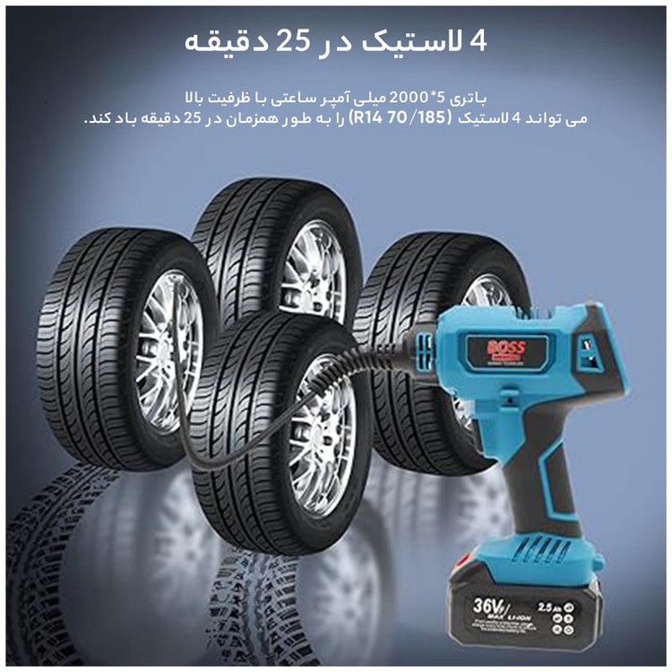 آداپتور، کابل تبدیل به فندکی، سه عدد سری (جهت باد زدن توپ، دوچرخه، قایق بادی و ...)