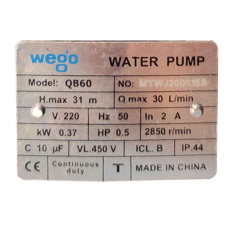 توان: 0.5 اسب بخار / 0.37 کیلو وات