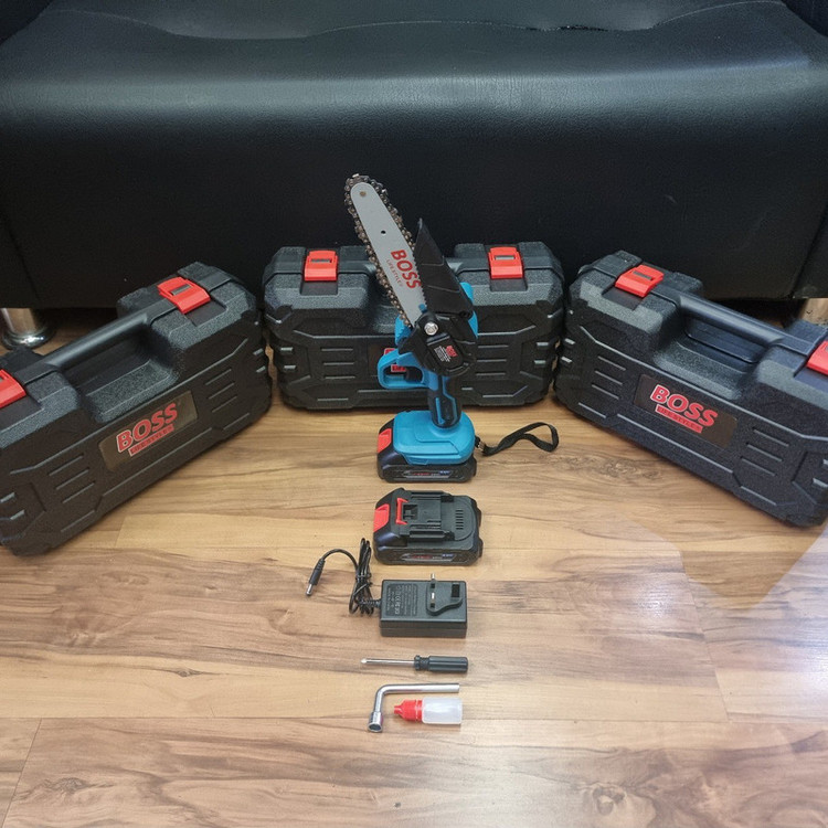 کیف حمل ضد ضربه - روغن دان -آچار - پیچ گوشتی - یک عدد ساطوری - یک عدد زنجیر - یک عدد محافظ براده - یک عدد شارژر باطری - دو عدد باطری لیتیومی 25 ولتی باس - دفترچه راهنما
