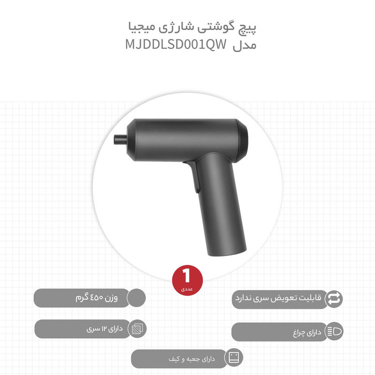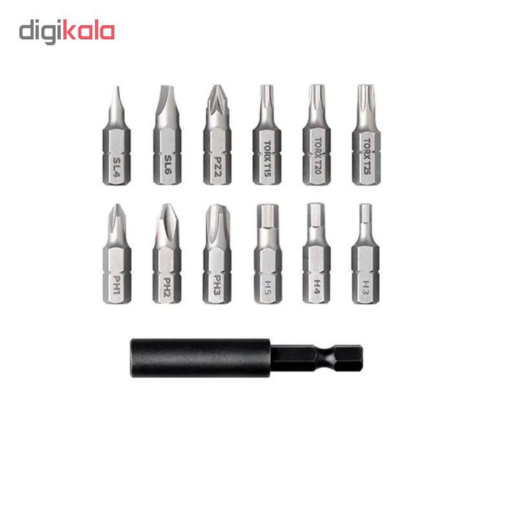 1 عدد پیچ گوشتی برقی راهنما به زبان چینی 1 عدد کابل شارژ جعبه سری ها دارای 12 سری و یک عدد extension