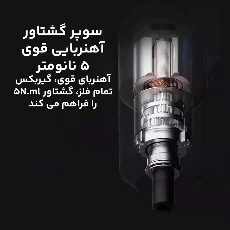مدت زمان شارژ : 120 تا 180 دقیقه دارای چراغ در جلو برای روشنایی گشتاور 5 نیوتون متر پورت شارژ دستگاه تایپ سی میباشد
