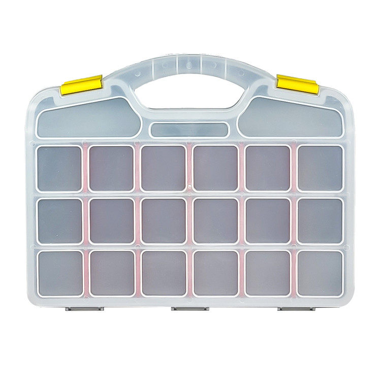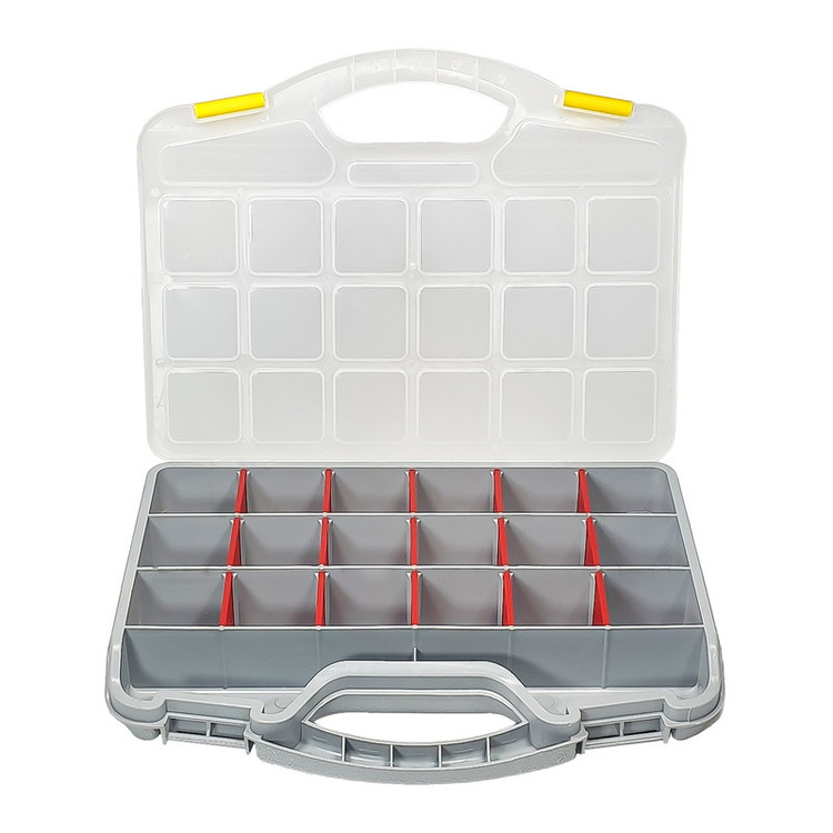قابلیت تغییر تعداد بخش ها با خارج یا وارد کردن صفحات پلاستیکی بصورت کشویی دارای دو گیره بسیار مستحکم برای بستن جعبه بدون هیچ گونه لقی بدنه بسیار محکم