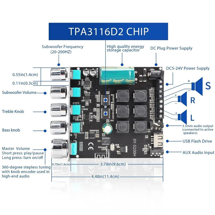 ماژول آمپلی فایر بلوتوثی مدل 200w_Tpa3116d2 کد 5vol