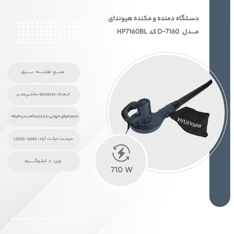 - دارای کابل به طول 2 متر - کلید تنظیم سرعت 6 حالته - دارای قفل سوییچ - قابلیت تغییر وضعیت دهانه به منظور تغییر کاربری از حالت دمش به مکش - دارای لاستیک ضد لغزش روی دسته - طراحی ارگونومیک جهت راحتی کاربر
