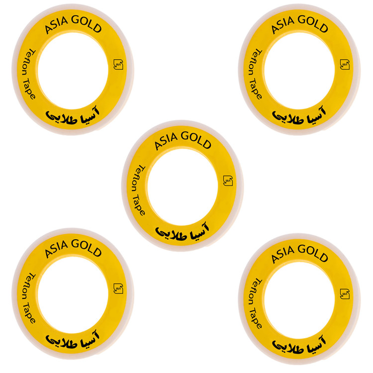 نوار تفلون آسیا طلایی پنج عددی مناسب برای عایق کاری و لوله کشی و ... دارای جنس مرغوب و با کیفیت