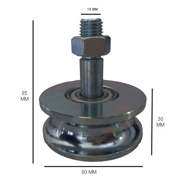 جنس فولاد آبکاری شده دارای دو عدد بلبرینگ و قابلیت استفاده طناب یا سیم بکسل با سایزهای مختلف