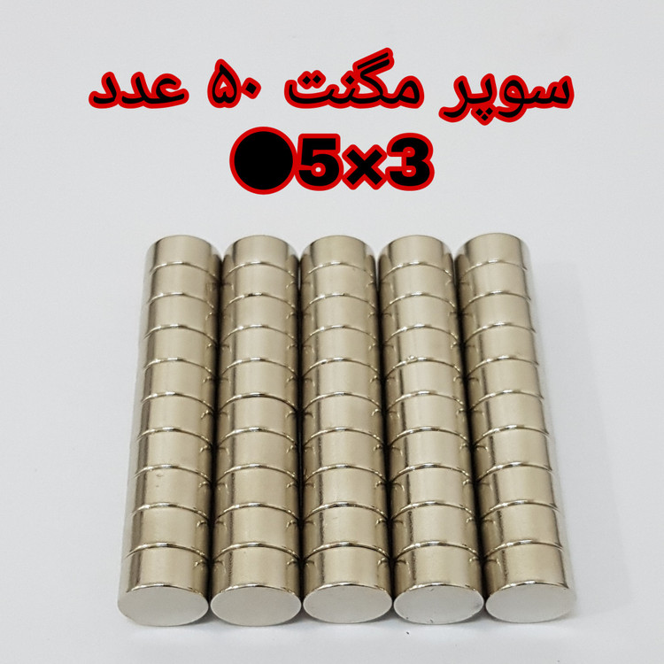 سایر توضیحات: مگنت نئودیمیوم گرد سایز ۳ × ۵ میلی متر
