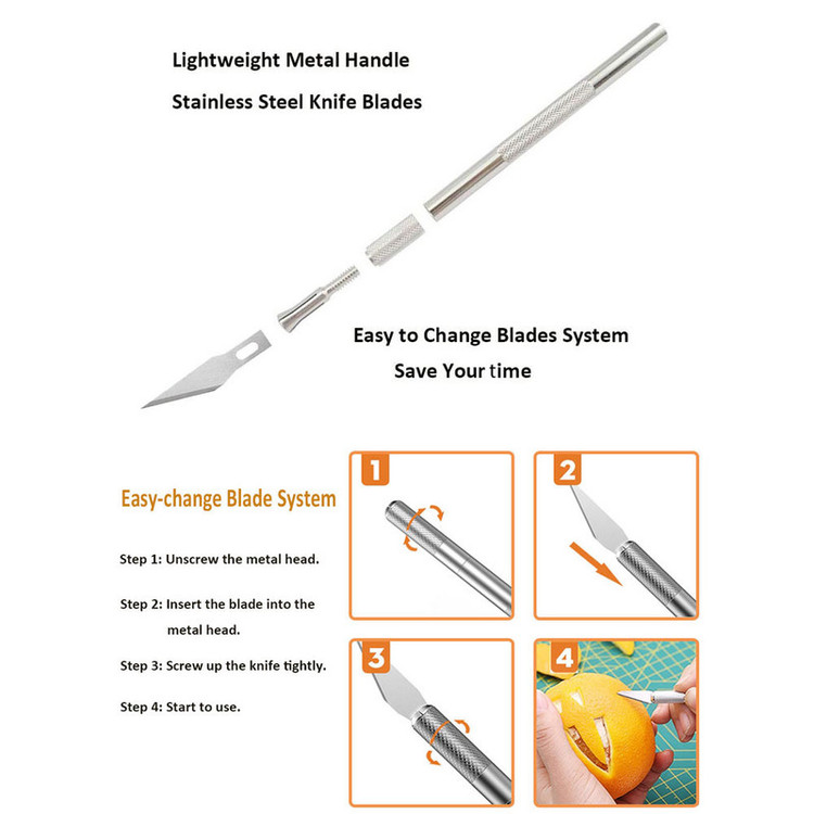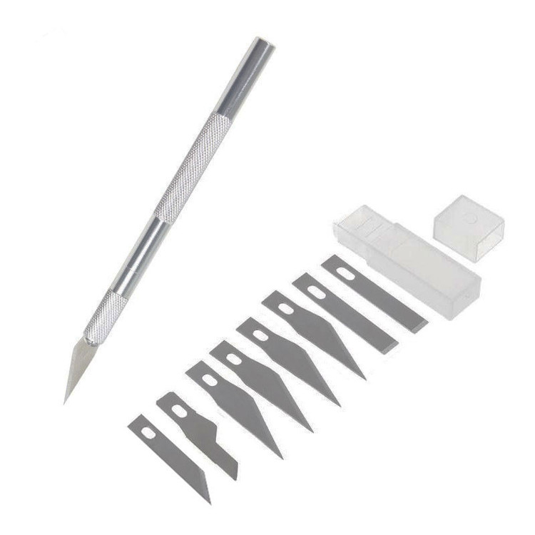 کاتر قلمی تمام فلزی دارای 9 عدد تیغ مناسب برای کارهای ظریف دارای دسته شیاردار جهت سر نخوردن در دست