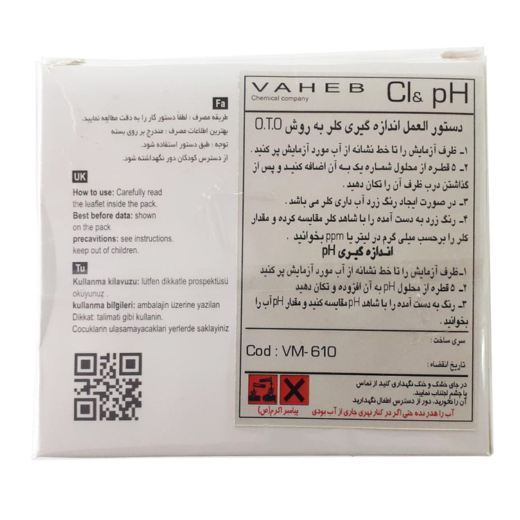 دامنه اندازهگیری: کلر : 0.2 تا 0.6 و پی اچ 6.8 تا 8.2