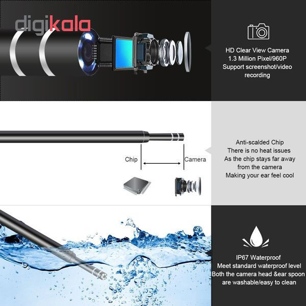 ویدئو آندوسکوپ پرتابل گوش مدل IP67 HD
