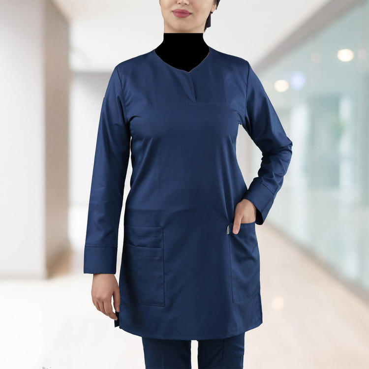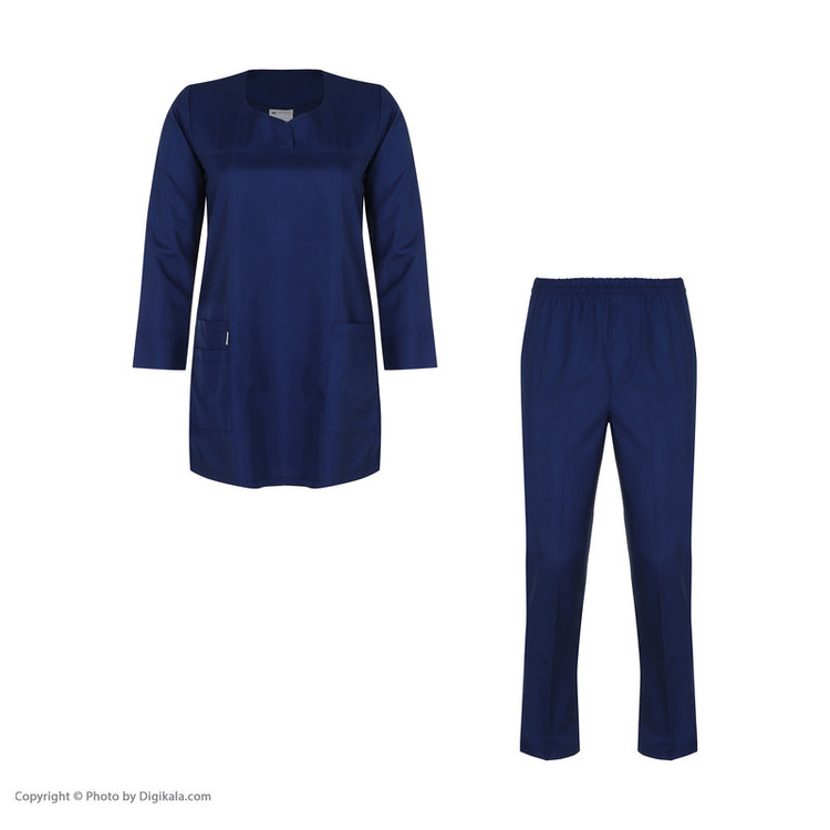 اسکراب زنانه سورمه ای روپوش + شلوار روپوش جلو بسته پارچه ترگال دارای دو جیب بزرگ در پایین روپوش دارای جیب گوشی موبایل روی جیب سمت راست شلوار تمام کش شلوار جیب دار دارای جیب گوشی موبایل روی جیب شلوار