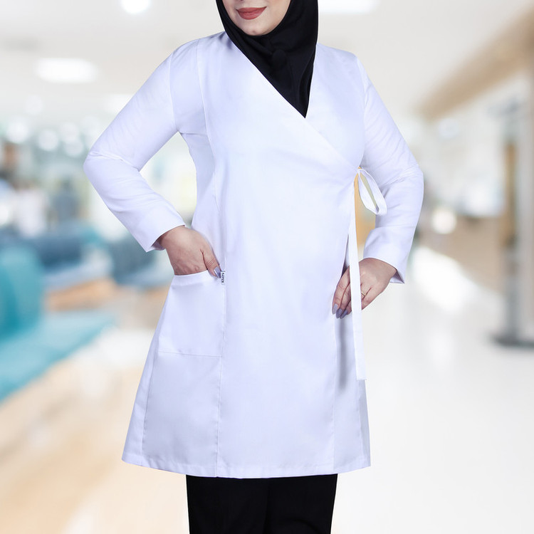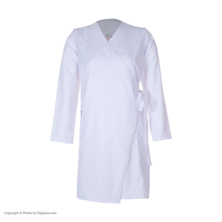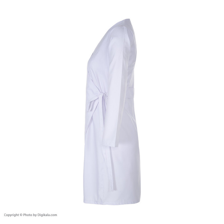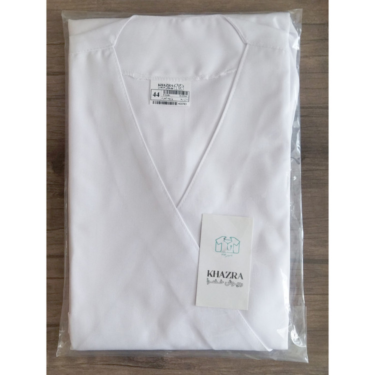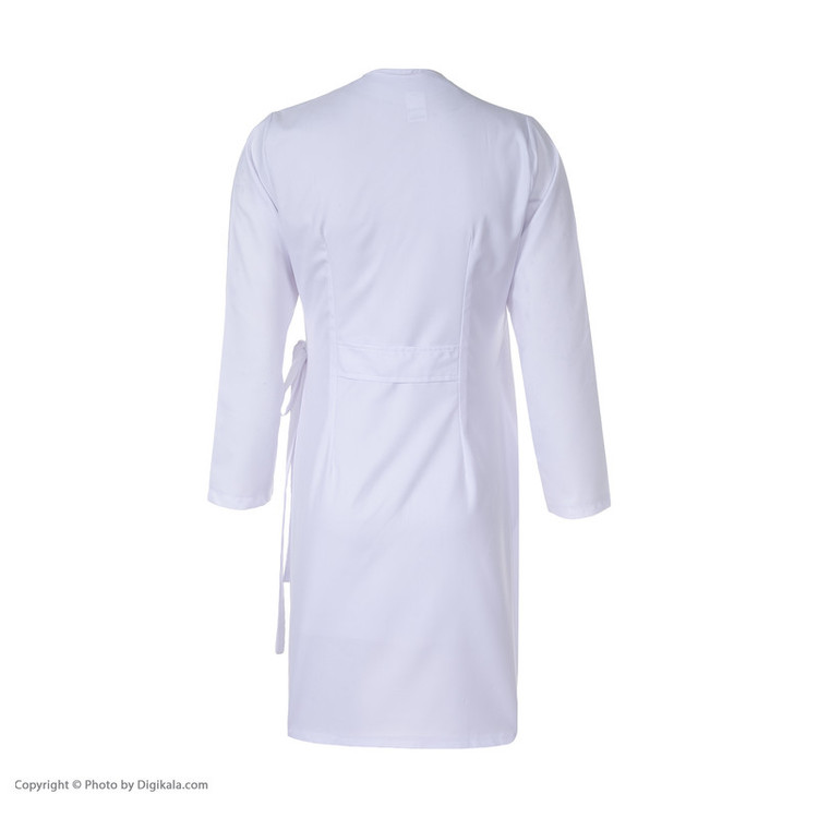 پارچه کجراه سفید یک جیب پایین دارای بندک پشت دارای ساسون پشت دارای بند تنظیم سایز جلوی شکم