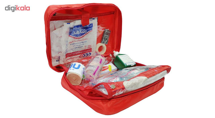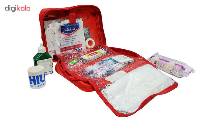 محتویات جعبه کمکهای اولیه: ماسک , چسب زخم , گاز استریل , بتادین , باند کشی , باند زخم , چسب باند , دستکش لاتکس , پد الکلی , تیغ بیستوری , پنبه , سنجاق قفلی , تب سنج , گاز وازلینه , باند دور بافت