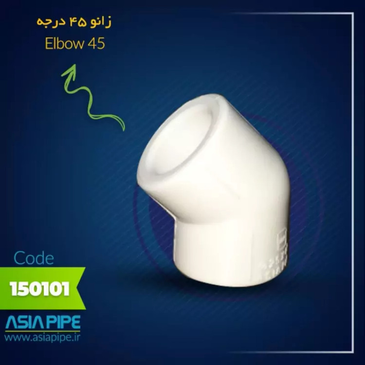 زانو 45 درجه 20 سفید تک لایه آسیا مناسب لوله کشی سرد و گرم