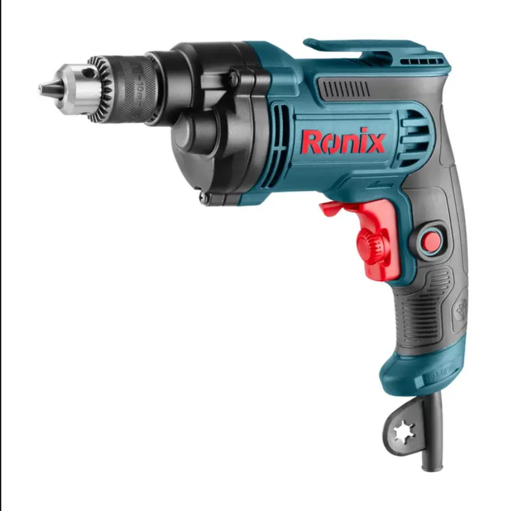 - دریل برقی 2116 رونیکس، دارای نیمتنه فلزی است و با موتور پرقدرت 500 وات کار میکند. همچنین، مجهز به سهنظام دوتکه مستحکم، 10 میلیمتری و آچاری است که بر عملکرد دستگاه تاثیرگذار است. این ابزار برقی کاربردی، با برخورداری از اهرم چپگرد/راستگرد میتواند در کنار عملیات دریلکاری به عنوان پیچگوشتی برقی نیز کار کند.