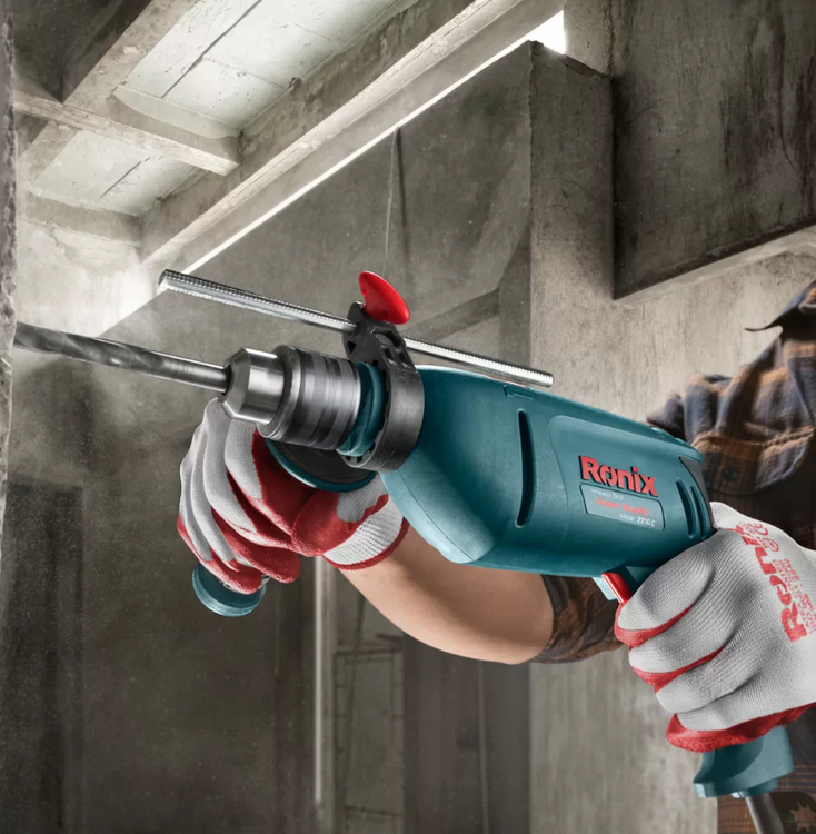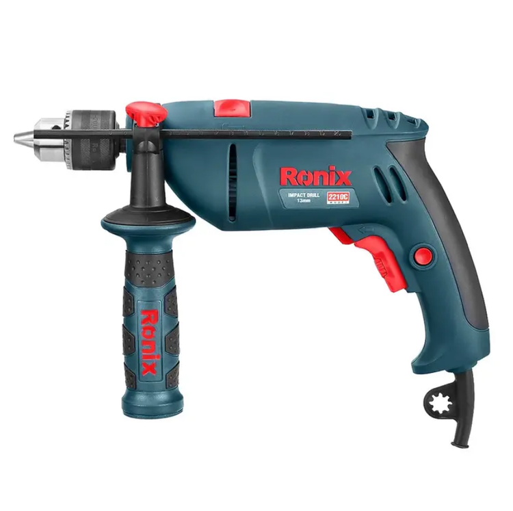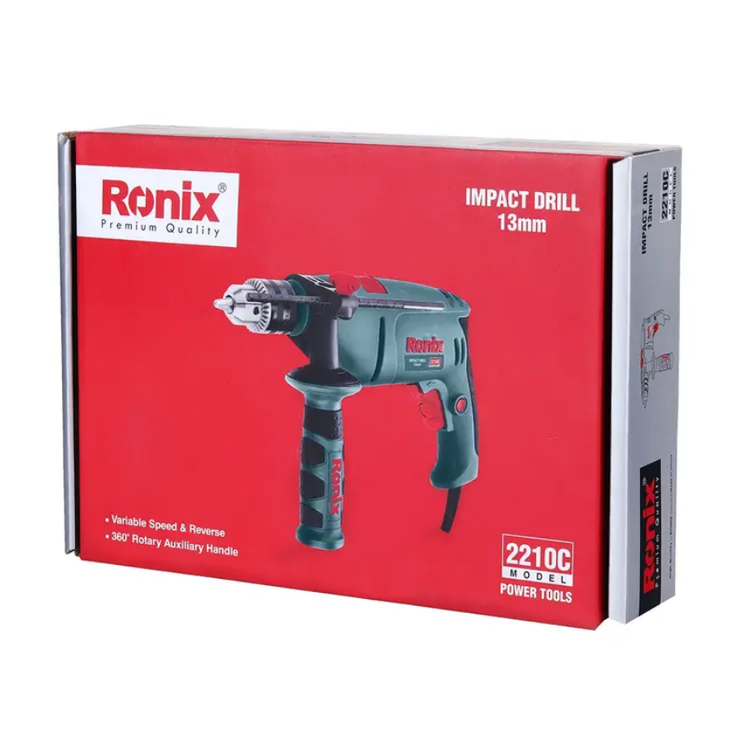 دریل برقی چکشی 2210C رونیکس، با موتور قدرتمند 810 وات و متشکل از آرمیچر و بالشتکهای صنعتی باکیفیت بالا تولید شده است. سیستم بلبرینگ دوبل در قسمت شفت، جهت افزایش قابلیت چکشی این دریل مورد استفاده قرار میگیرد. در این دریل، حداکثر سرعت گردش در حالت آزاد، 3000 دور در دقیقه است که به وسیلهی دیمر کنترل سرعت تنظیم میشود.