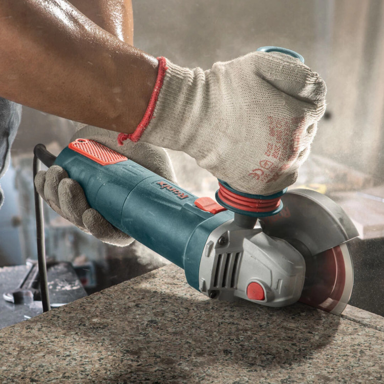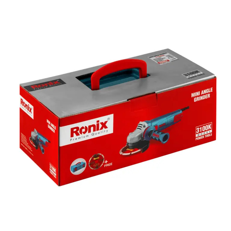 دسته جانبی طراحی شده توسط رونیکس، گارد محافظ، صفحه برش گرانیت 115 میلیمتری، آچار، یک جفت زغال اضافه