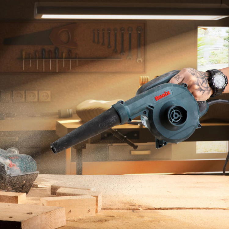 از بلوور برقی 1205 رونیکس، جهت غبارزدایی کارگاههای ساختمانی، کارگاههای نجاری و محیطهای کاری مختلف مانند مغازهها استفاده میشود. موتور 680 وات این دستگاه، بالاترین توان را برای دمندگی ارائه میدهد و کلید دیمردار، سرعتی معادل با صفر تا 16000 دور در دقیقه را در 6 حالت مختلف ایجاد میکند. همچنین، این دستگاه علاوه بر قابلیت دمندگی، حالت مکندگی نیز دارد و با تولید حداکثر جریان هوای 4.1 متر مکعب در دقیقه، به راحتی گرد و غبار را از روی سطح مورد نظر میزداید.