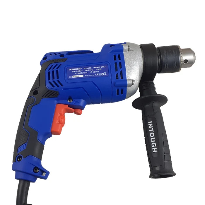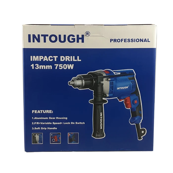 ویژگیهای ابزار: دریل چکشی با موتور سیم پیچ مسی 750 وات مجهز به نیم تنه فلزی سه نظام آچاری 13 میلیمتری سرعت در حال آزاد 0-3000 دور در دقیقه دارای دیمر تنظیم سرعت بدنه از جنس پلاستیک فشرده و عایق شده دوبل و ایمن