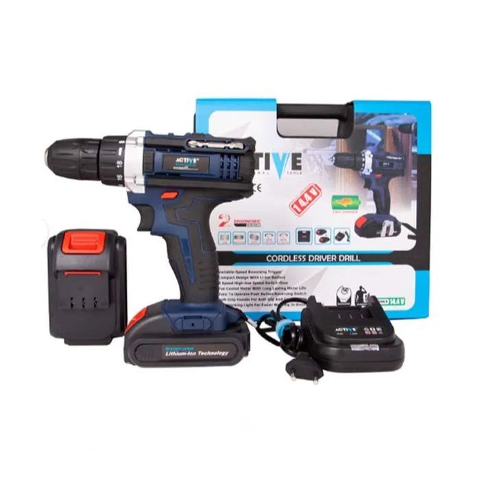 ویژگی های ابزار: باتری 14.4 ولت 1.5 آمپر لیتیوم یونی دارای سه نظام اتوماتیک 10 میلیمتر مجهز به گیربکس صنعتی تمام فلزی دو سرعته دارای سیستم خنک کننده جهت خنک نگه داشتن موتور دارای LED برای ارائه نور بهتر به کاربر دارای شارژر با قابلیت شارژ سریع