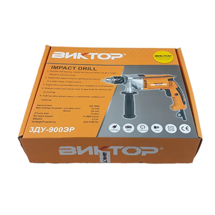 ویژگیهای ابزار: مجهز به موتور پر قدرت 900 وات سه نظام آچاری 13 میلیمتری مجهز به گیربکس و نیم تنه فلزی سرعت گردش آزاد 0-2600 دور در دقیقه قابلیت چرخشی و چکشی مجهز به دیمر کنترل سرعت