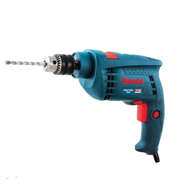 Ronix 2120 Impact Drill توان : 750 وات سه نظام 10 میلی متری آچاری سیستم جدید تعبیه آچار به صورت خشابی بر روی کابل برای سهولت استفاده دسته جانبی ضد لرزش