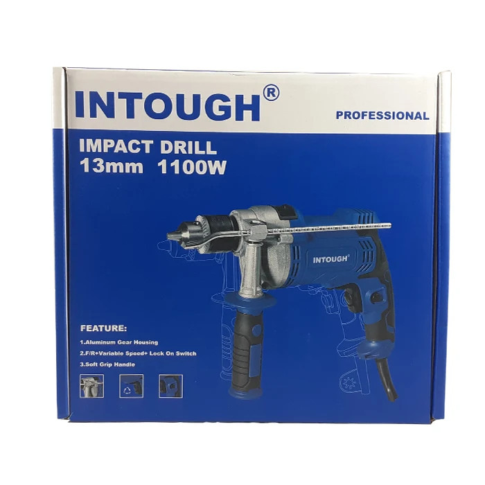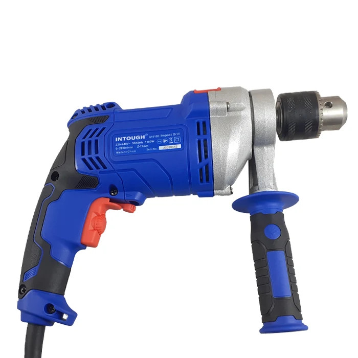 ویژگیهای ابزار: دریل چکشی با موتور سیم پیچ مسی 1100 وات سه نظام آچاری 13 میلیمتری مجهز به نیم تنه فلزی سرعت در حال آزاد 0-2800 دور در دقیقه دارای دیمر تنظیم سرعت بدنه از جنس پلاستیک فشرده و عایق شده دوبل و ایمن دسته با روکش ضد لغزش و دسته کمکی 360 درجه