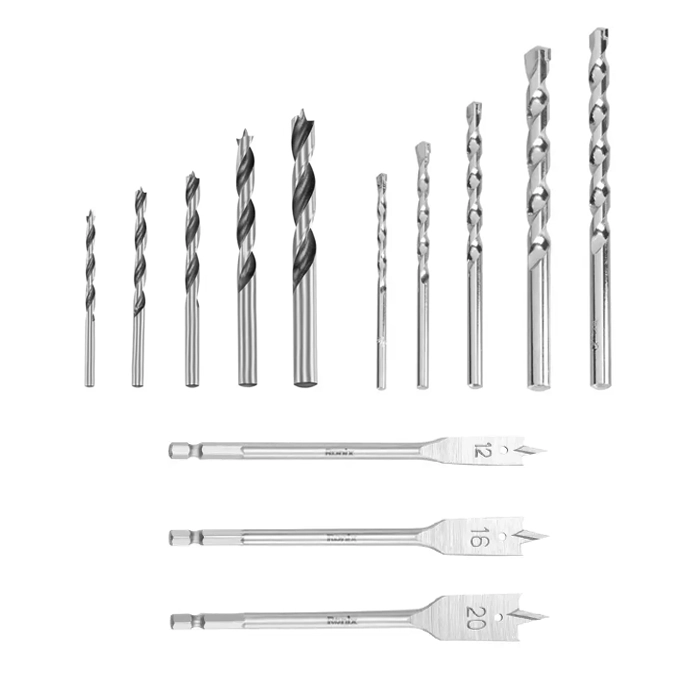 .: همراه با کیف ضد ضربه، متههای مخصوص چوب، فلز و سنگ، سری پیچ گوشتی، پیچ و رولپلاک